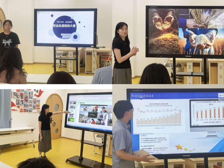 选手们连系细心制做的PPT,努力于提高粮食产物的附加值和市场所作力;有的选手则但愿投身于食物药品监管范畴,胡想绘就新将来。评委提出了贵重的看法,